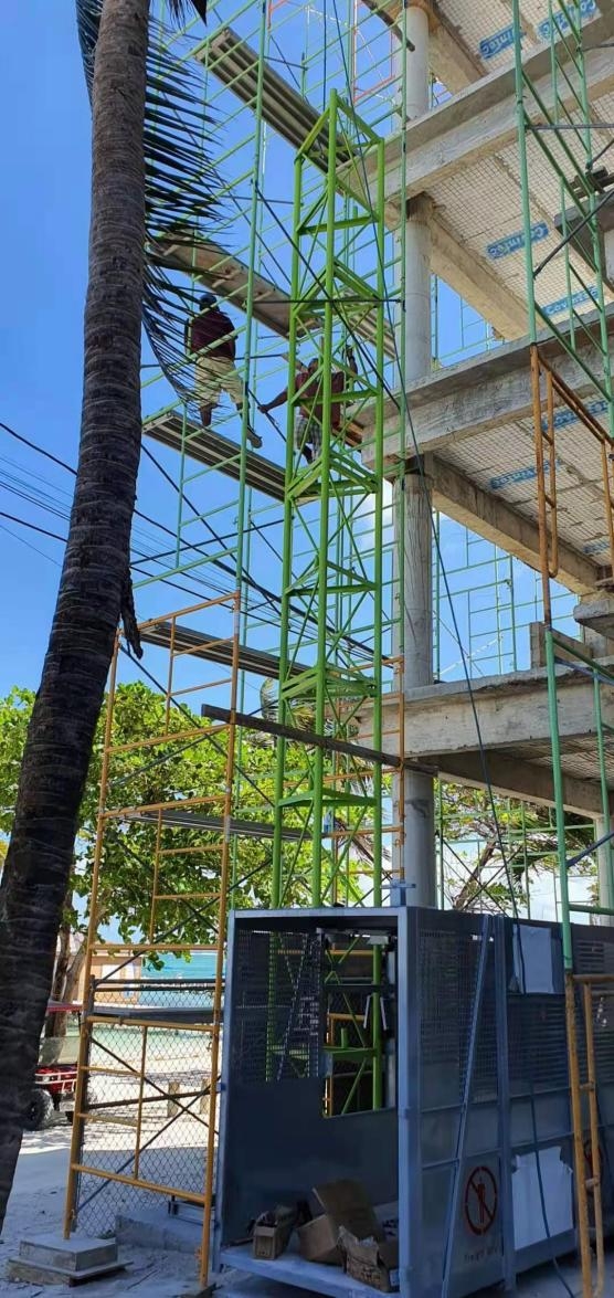 河南大誠機械定制物料提升機助力海外建設-伯利茲旅游酒店項目